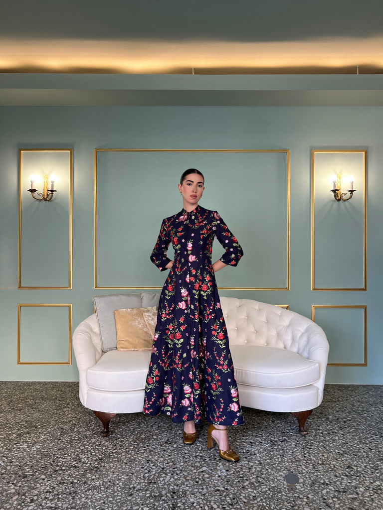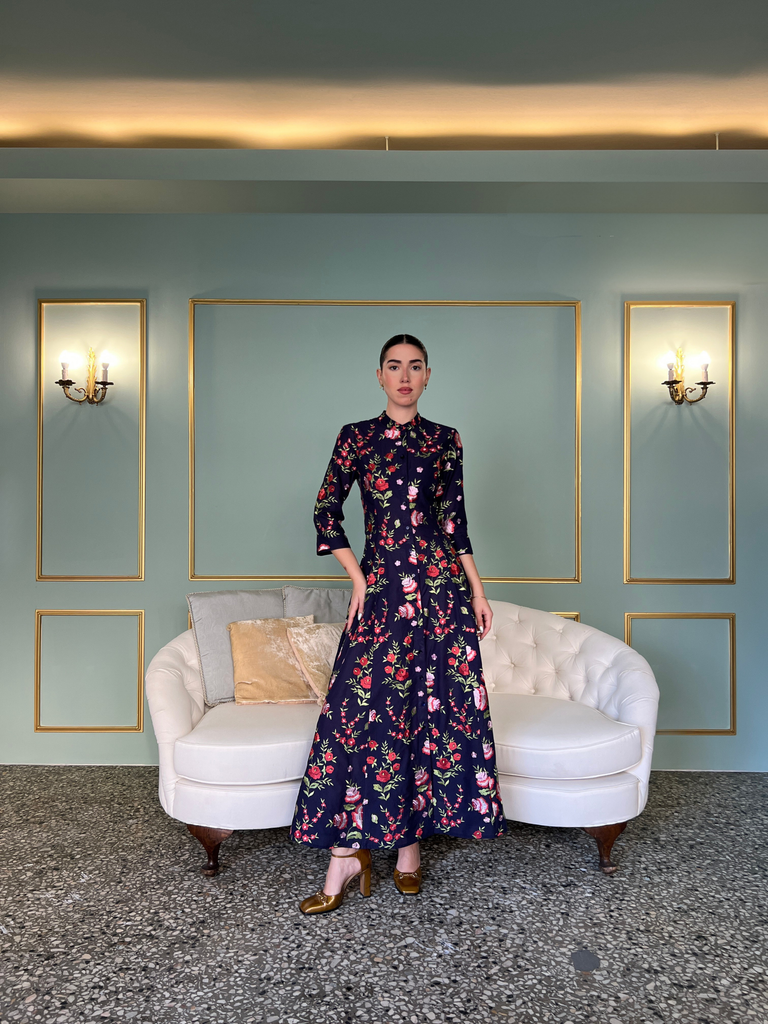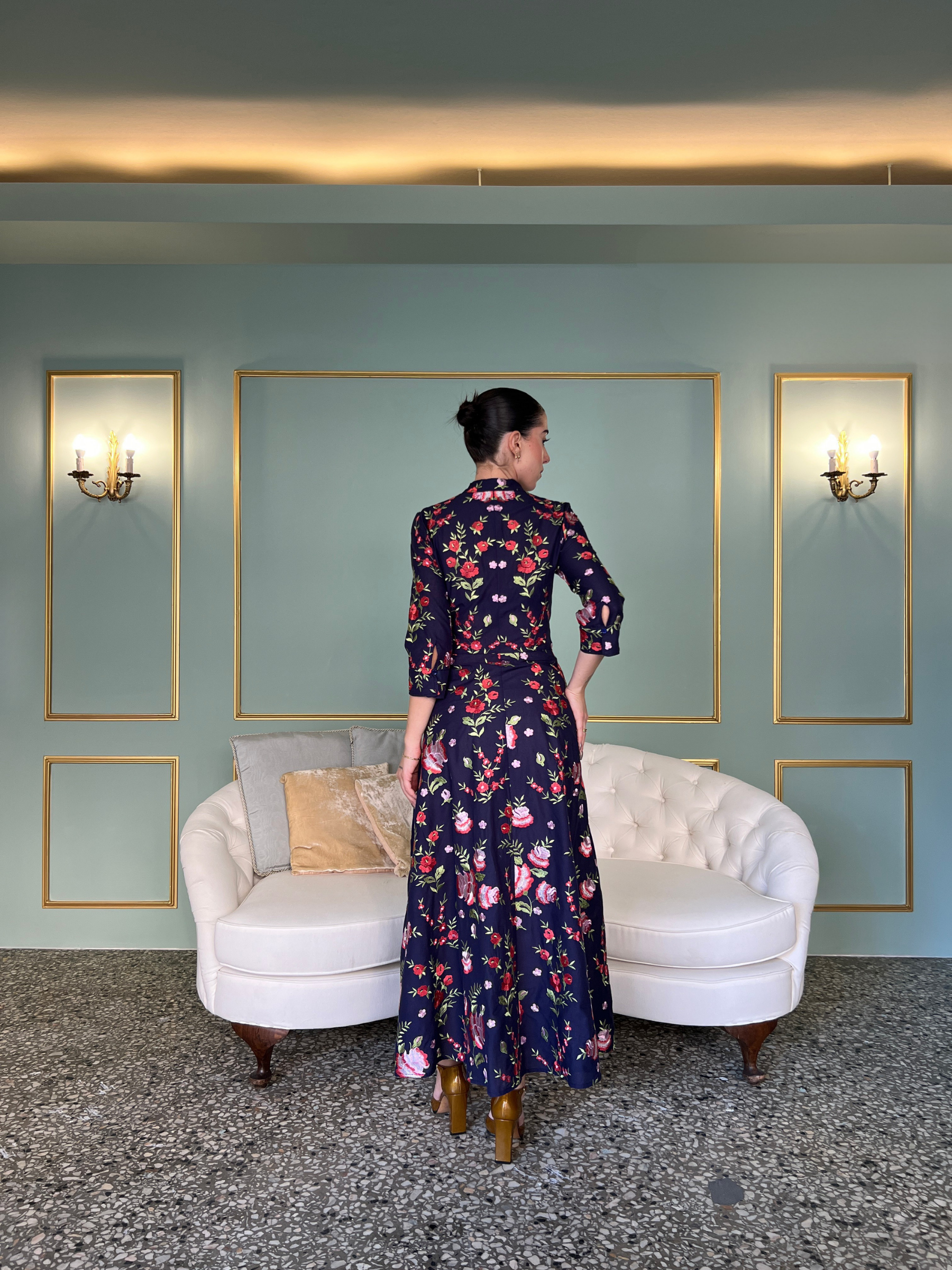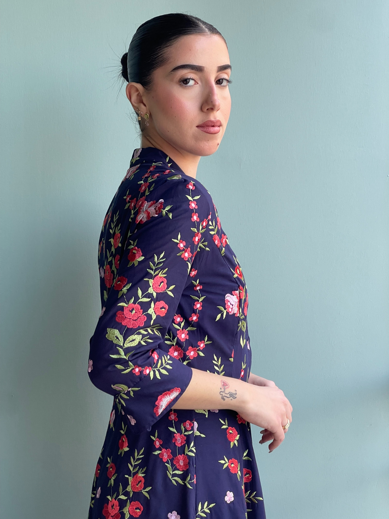 Midi shirtdress in floral embroidered print