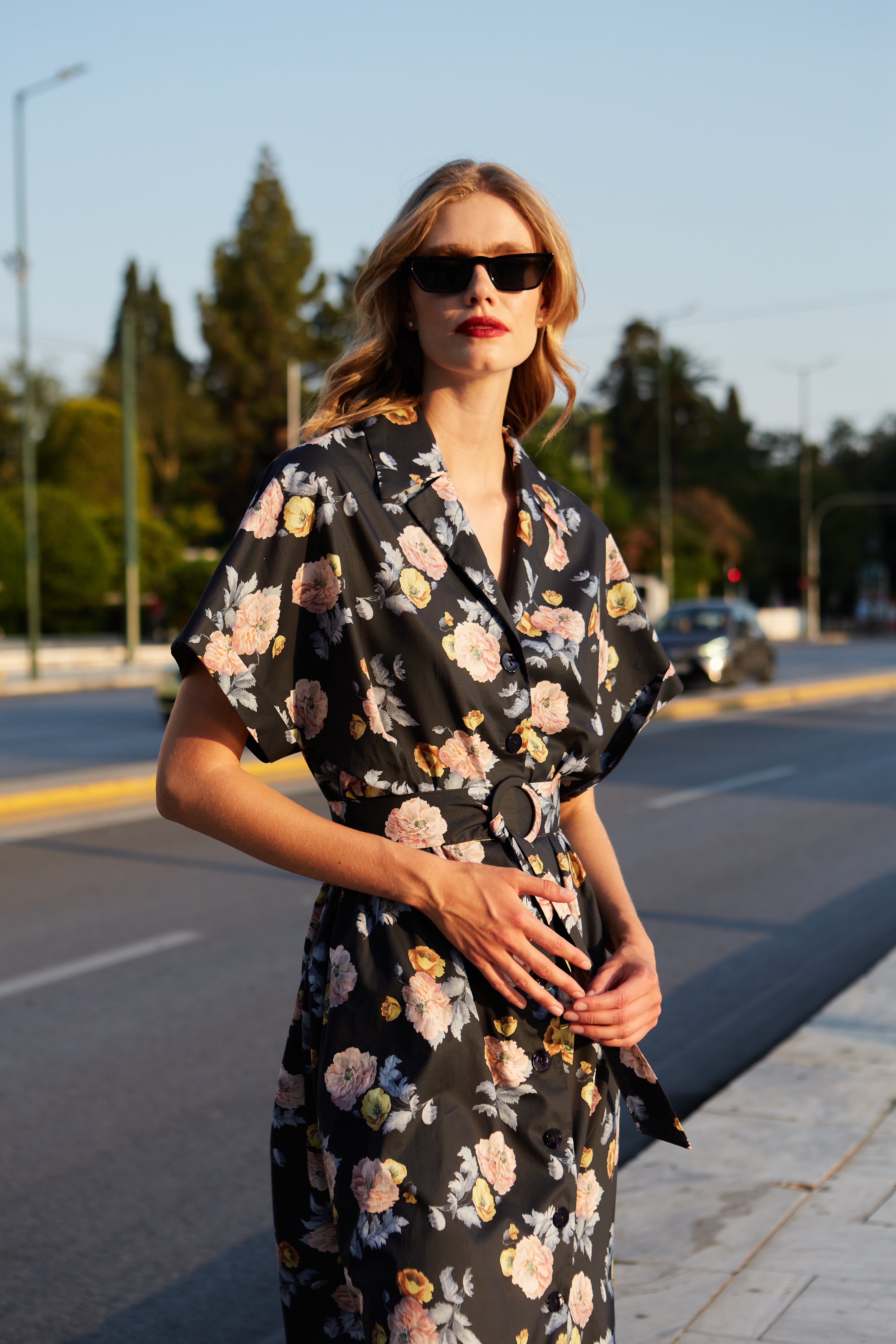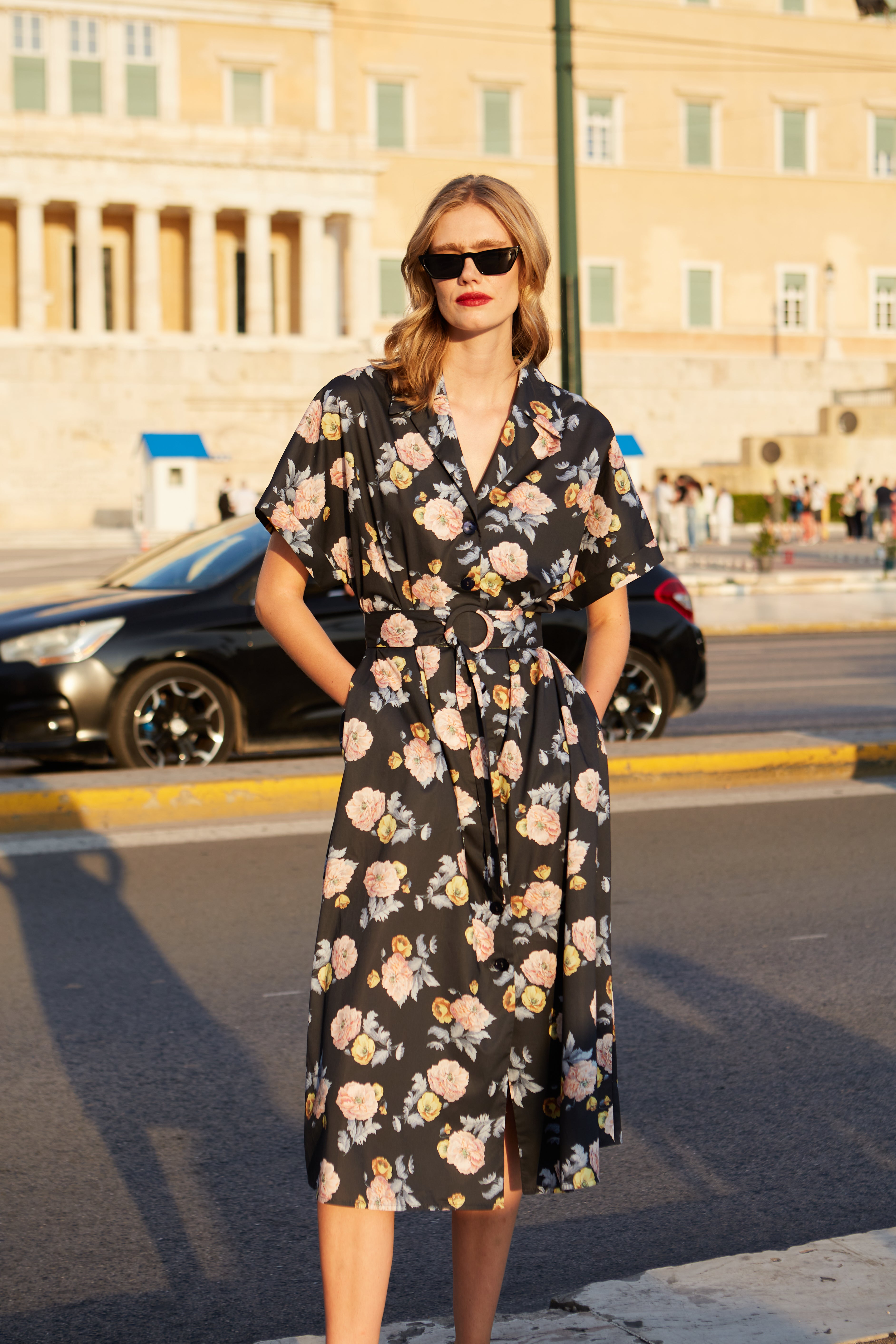 Midi shirtdress in floral print