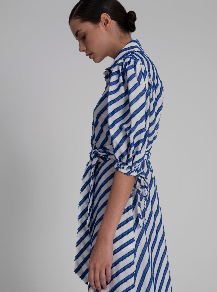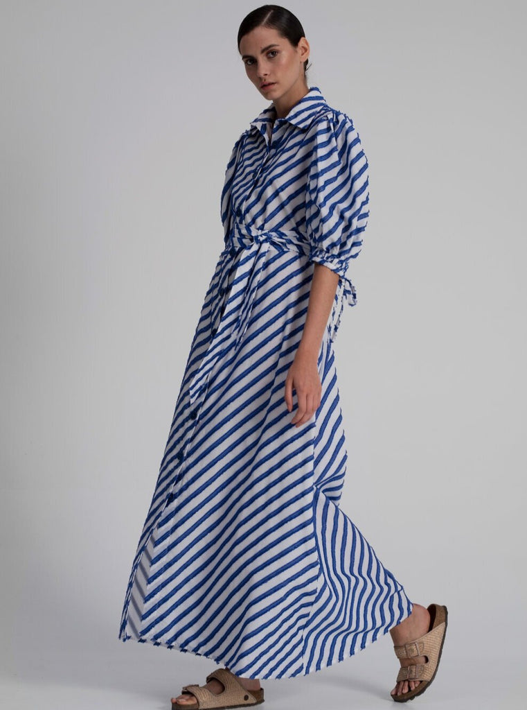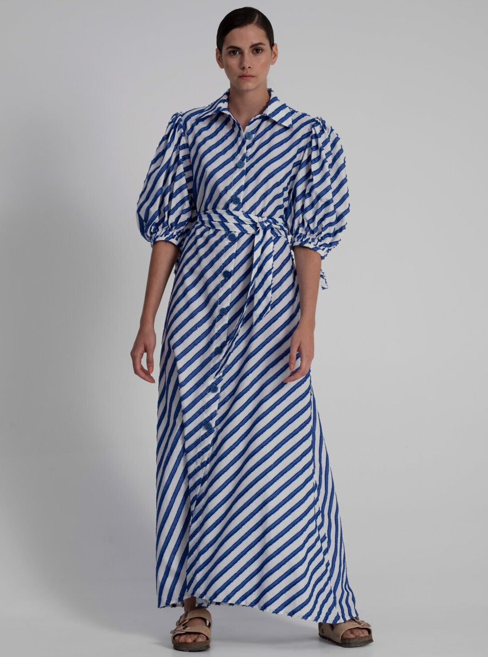 Long blue striped shirtdress from Resort 2020 collection “Watergarden”.